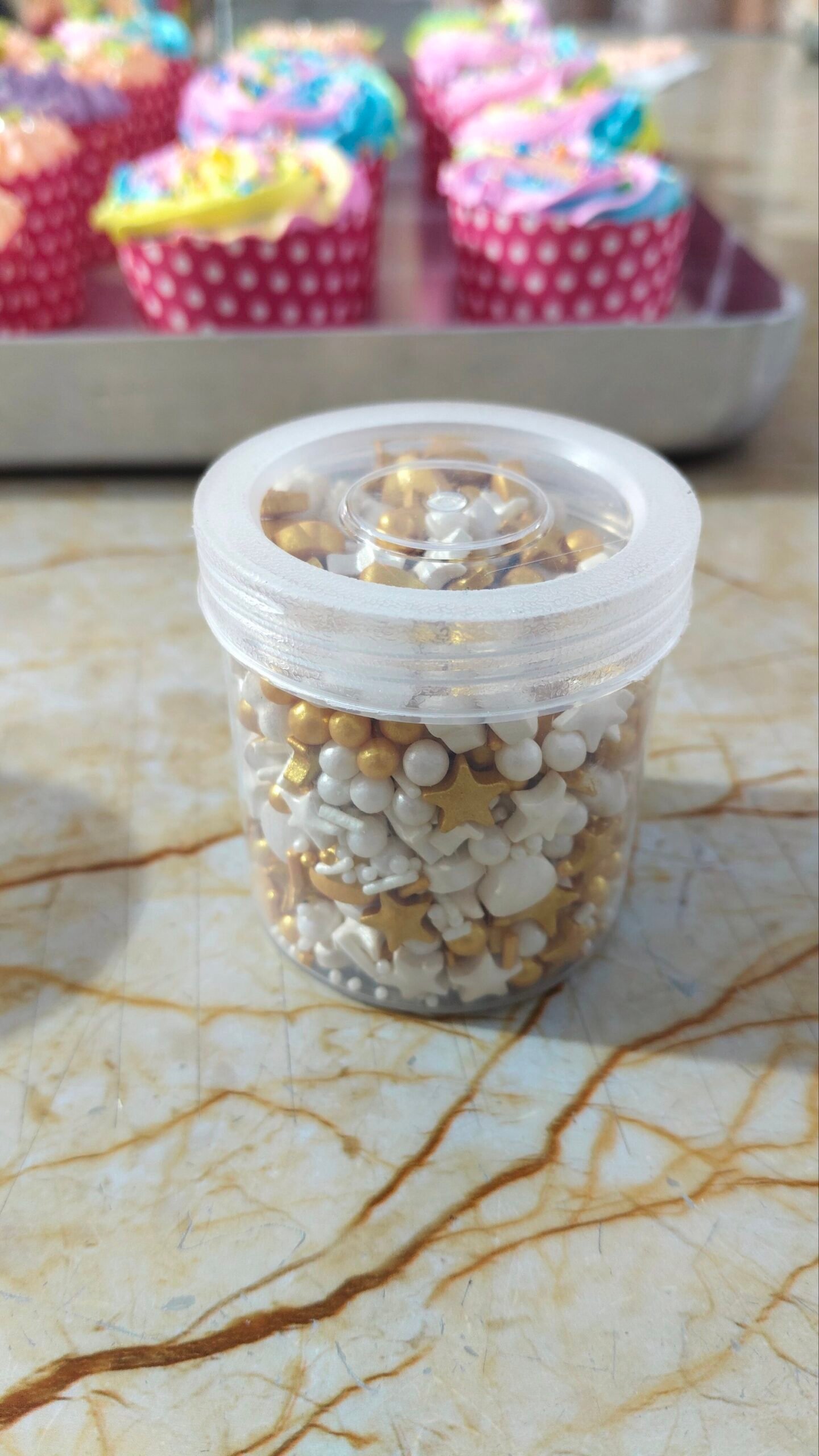 sprinkle edible star heatround miniature golden and white